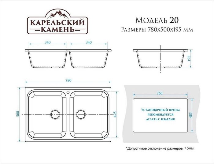 - Ширина мойки 50 см