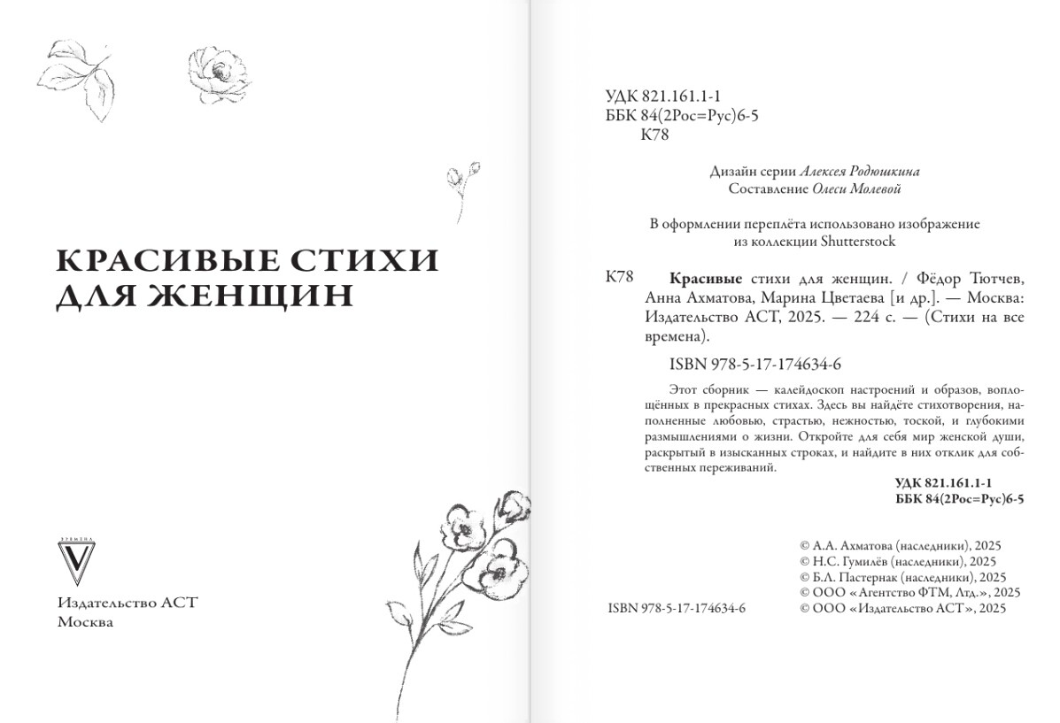 Книга АСТ Красивые стихи для женщин, твердая обложка (Пушкин Александр, Цветаева Марина, Ахматова Анна)