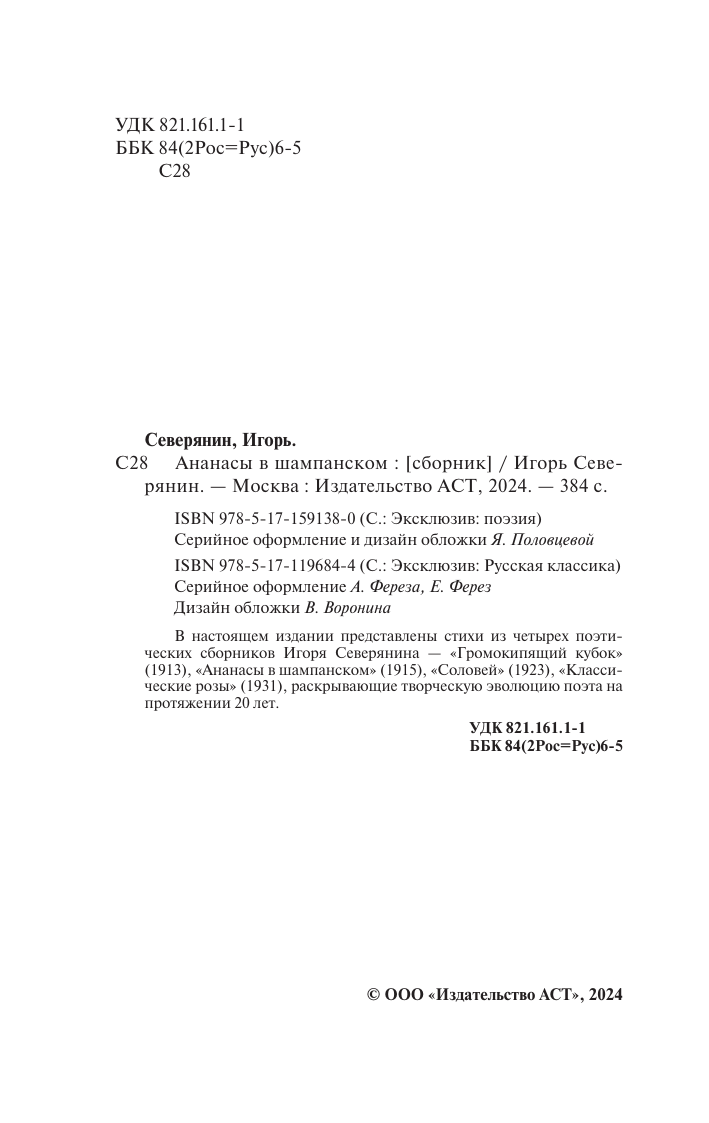Книга АСТ Ананасы в шампанском, мягкая обложка (Северянин Игорь)