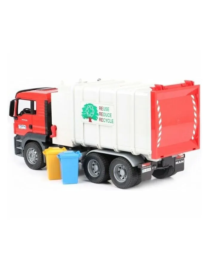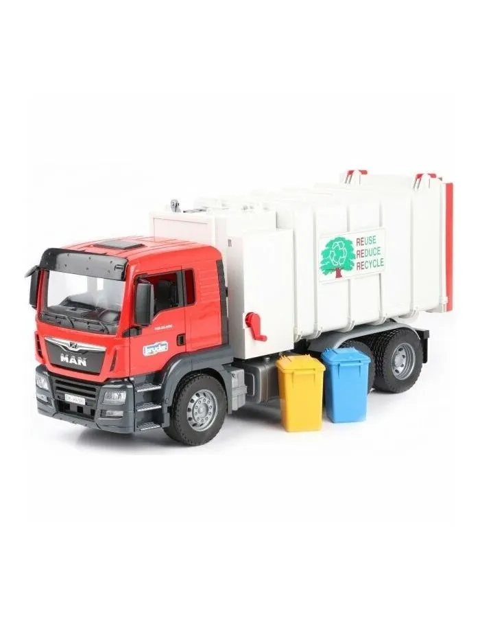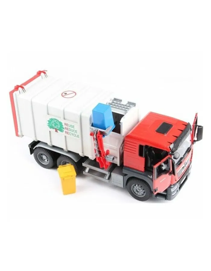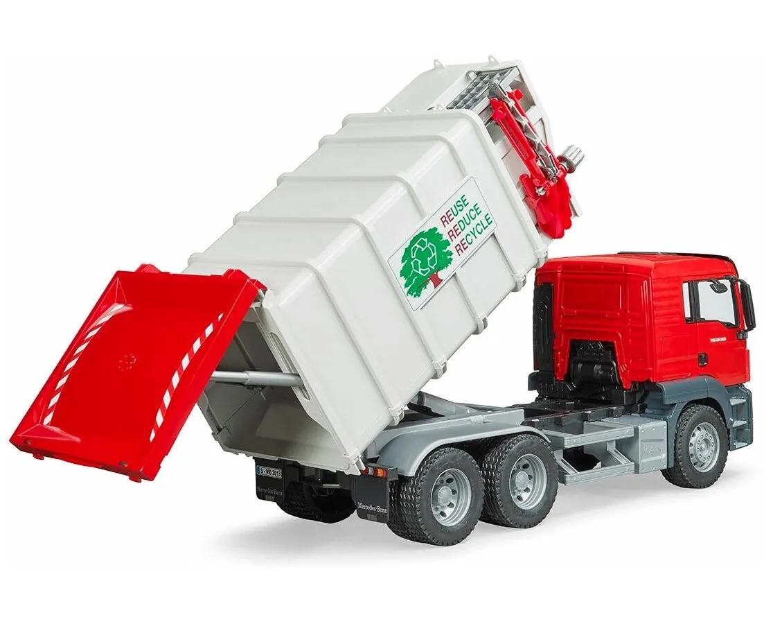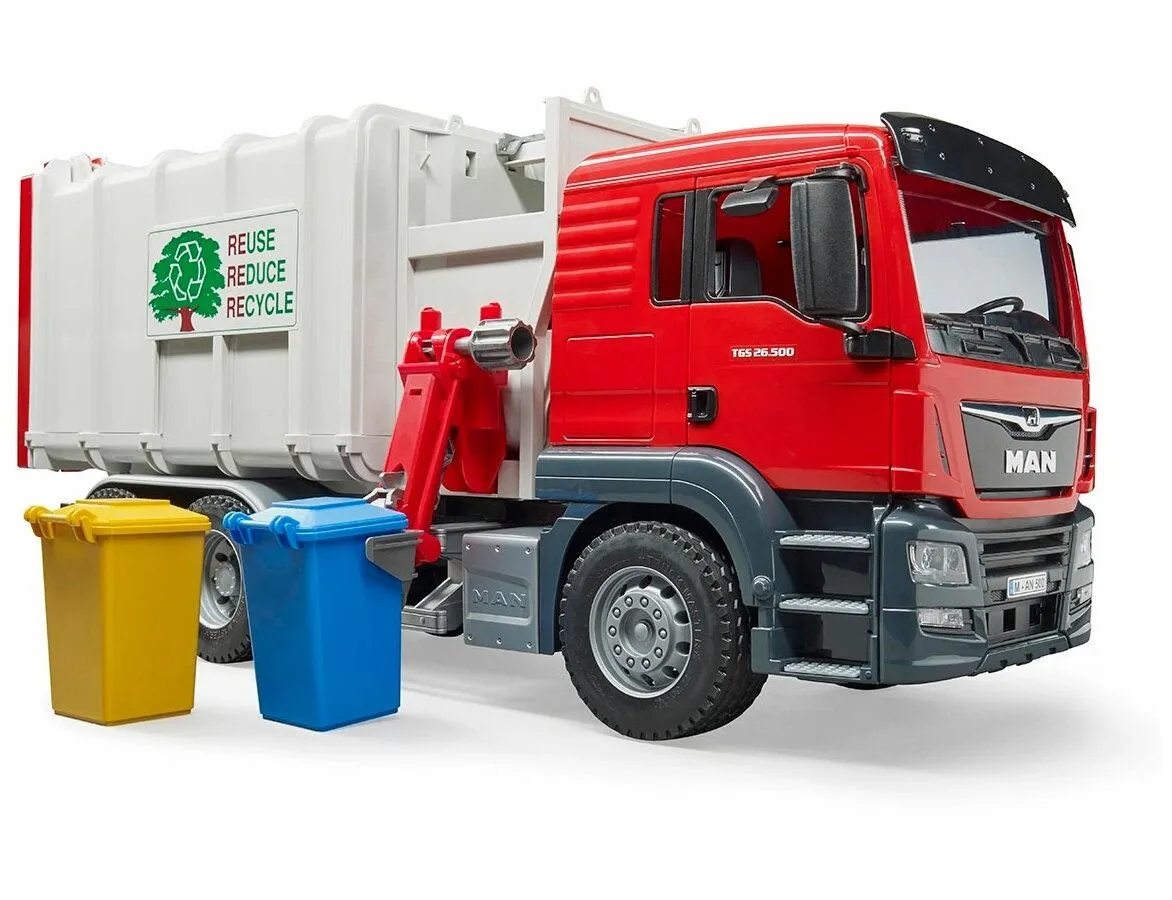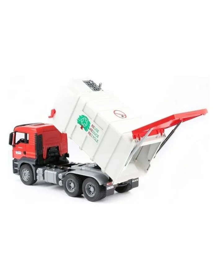 Описание товара Bruder 03761 "Мусоровоз MAN TGS" (цвет кузова серый, кабина – красный) (фикс. цена)