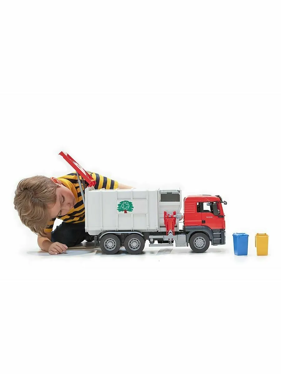 В наличии 8 050 руб. Bruder 03761 "Мусоровоз MAN TGS" (цвет кузова серый, кабина – кр...