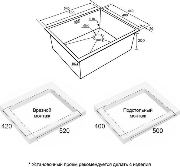 - Способ установки врезная на столешницу, врезная под столешницу, врезная вровень со столешницей
