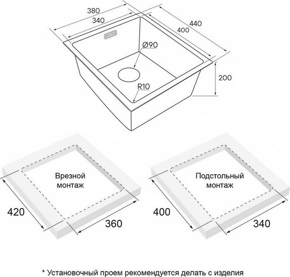 - Способ установки врезная на столешницу, врезная под столешницу, врезная вровень со столешницей