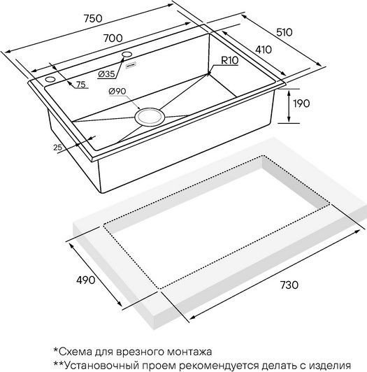 - Способ установки врезная на столешницу