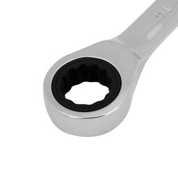 Ключ комбинированный трещоточный предназначен для монтажа и демонтажа резьбовых соединений.Покрытие хромоникелем продлевает срок службы и обеспечивает усиленную защиту от коррозии.Хром-ванадиевый сплав (Chrome Vanadium) CrV, из которого изготовлен инструмент, обладает такими свойствами, как прочность, жесткость и устойчивость к износу. Во время прокаливания он менее подвержен деформациям и потере первоначальной формы, чем другие типы инструментальной стали.Технические характеристики:Твердость материала рабочей части ключа: 44-48 HRCРазмер: 14 мм