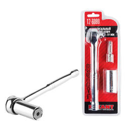 Универсальный торцевой ключ с трещоткой 7-19 мм REXANT — это уникальный инструмент, заменяющий множество других. Он имеет универсальное гнездо, которое моментально принимает форму любых винтов, шурупов, гаек, крючков и головок болтов. Широкий диапазон регулировки, от 7 мм до 19 мм. Внутри гнезда инструмента содержит 54 элемента закаленной стали. Инструмент выполнен из прочных материалов, обеспечивающих долгий срок службы. А надежные механизмы позволяют снизить усилия при работе с инструментом и обеспечивают дополнительный комфорт. Преимущества:- Один инструмент заменяет множество других.- Специально разработанные и подобранные прочные материалы обеспечивают долгий срок службы.- Надежные механизмы позволяют снизить усилия при работе с инструментом и обеспечивают дополнительный комфорт.Комплектация:- Универсальная торцевая головка- Ключ трещотка- Адаптер для дрели или шуруповертаХарактеристики: Материал: нержавеющая сталь Количество предметов: 3 Размер упаковки: 26х16,5 см Цвет: хром