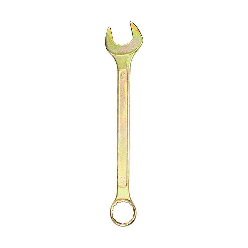 Комбинированный гаечный ключ предназначен для монтажа и демонтажа резьбовых соединений: болтов и гаек. Инструмент применяется в бытовых условиях, в слесарных мастерских и на производстве.Желтое оцинкованное покрытие препятствует появлению коррозии и продлевает срок службы инструмента.Технические характеристики:Твердость материала рабочей части ключа: 44-48 HRCРазмер: 24 мм
