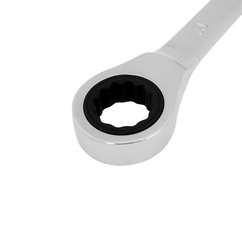 Ключ комбинированный трещоточный предназначен для монтажа и демонтажа резьбовых соединений.Хром-ванадиевый сплав (Chrome Vanadium) CrV, из которого изготовлен инструмент, обладает такими свойствами, как прочность, жесткость и устойчивость к износу. Во время прокаливания он менее подвержен деформациям и потере первоначальной формы, чем другие типы инструментальной стали.Технические характеристики:Твердость материала рабочей части ключа: 44-48 HRCРазмер: 17 мм