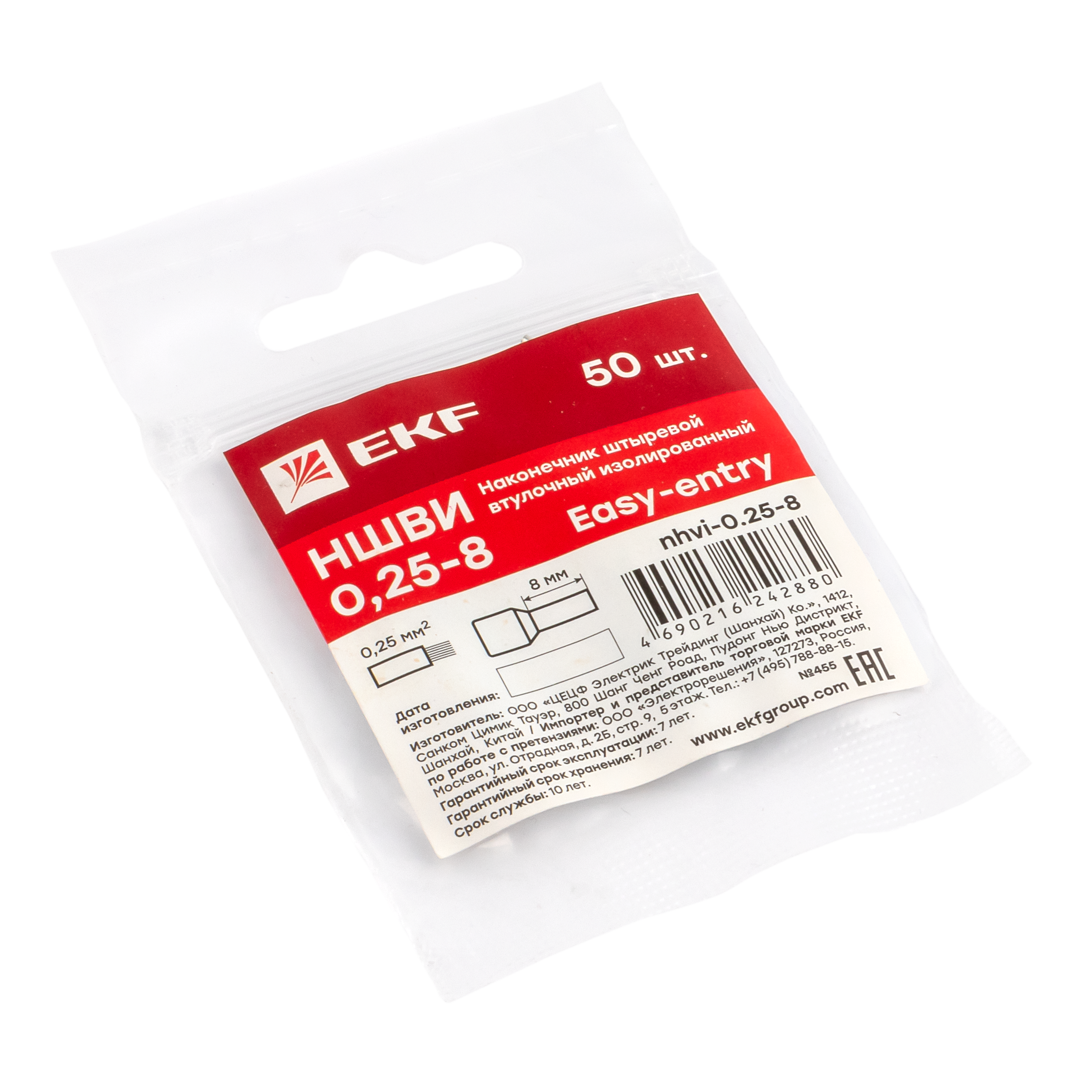 Одинарные и двойные втулочные наконечники (НШвИ и НШвИ2) EKF PROxima являются единственными специально разработанными наконечниками под опрессовку, которые полностью заменяют обязательный процесс облуживания многопроволочных медных проводов (типа ПВ-3, ПВС и т.п.) при монтаже различного электрооборудования. Втулочные наконечники состоят из медной луженой трубки, один конец которой развальцован для облегчения ввода многожильного провода и изолирующей манжеты из полипропилена.