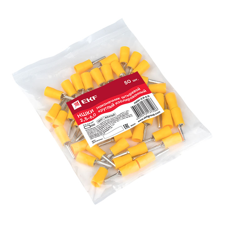 Наконечники штыревые круглые изолированные НШКи предназначены для оконцевания опрессовкой медных проводов и последующего крепежа наконечников к электрооборудованию с контактными гнездами штифтового типа (автоматическим выключателям, УЗО, клеммным блокам и т. п.). Опрессовка наконечников выполняется поверх ПВХ манжеты, а не металлической втулки.