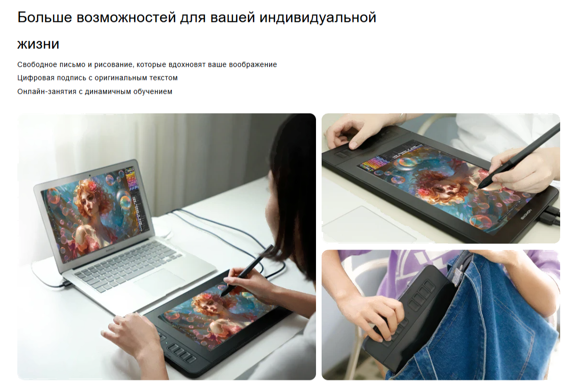 • Комплектация перо, держатель пера, набор наконечников, адаптер, кабель (3 в 1), адаптер питания, документация