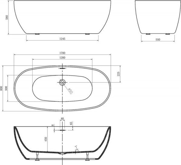 • Глубина ванны 45 см