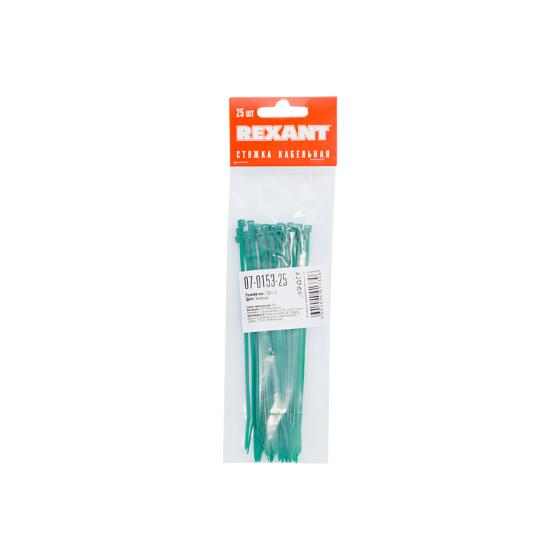 Хомут нейлоновый (кабельная стяжка) 150х2,5 мм зеленый REXANT предназначен для крепления или обвязки в жгут кабелей и проводов, крепления гибких гофротруб, а также других предметов к несущей поверхности или для соединения между собой. Такая стяжка используется при проведении электромонтажных работ, при монтаже структурированных кабельных систем, для бытовых нужд, а также в других отраслях народного хозяйства. Представляет собой гибкую полоску из нейлона высокой прочности (полиамид-6,6) с замком на конце. Полиамид-6,6 — кристаллизующийся конструкционный материал, имеющий высокую твердость и механическую прочность, отличающийся высокими электроизоляционными свойствами. Простой и удобный монтаж осуществляется вручную следующим образом: большим пальцем левой руки прижать замок к пучку, а правой рукой затягивайте петлю, либо с помощью специального инструмента REXANT арт.12-4521 или 12-4541 (вставить конец затяжки в замок и затянуть до полной фиксации пучка, после чего отрезать выступающую часть бандажа). Не рекомендуется перегибать бандаж при затяжке. Хомуты нейлоновые гарантируют качество, оперативность и экономичность профессионального электромонтажа, обеспечив максимально надежную фиксацию предметов.Основные характеристики:- длина и ширина: 150х2,5 мм- диаметр охвата (максимальный): 35 мм- максимальная рабочая нагрузка: 8 кг- прочность при растяжении: не менее 50 МПа- модуль упругости при растяжении: 8000-11000 МПа- высокое сопротивление к основаниям, маслам, смазочным материалам, хлоридным растворителям- класс воспламеняемости: UL 94 класс V-2 (самозатухающий)- не содержит галогенов- тип: неразъемные, одноразового использования- температурный диапазон использования: –35...+85 ℃- количество в упаковке: 25 шт.- цвет: зеленый.