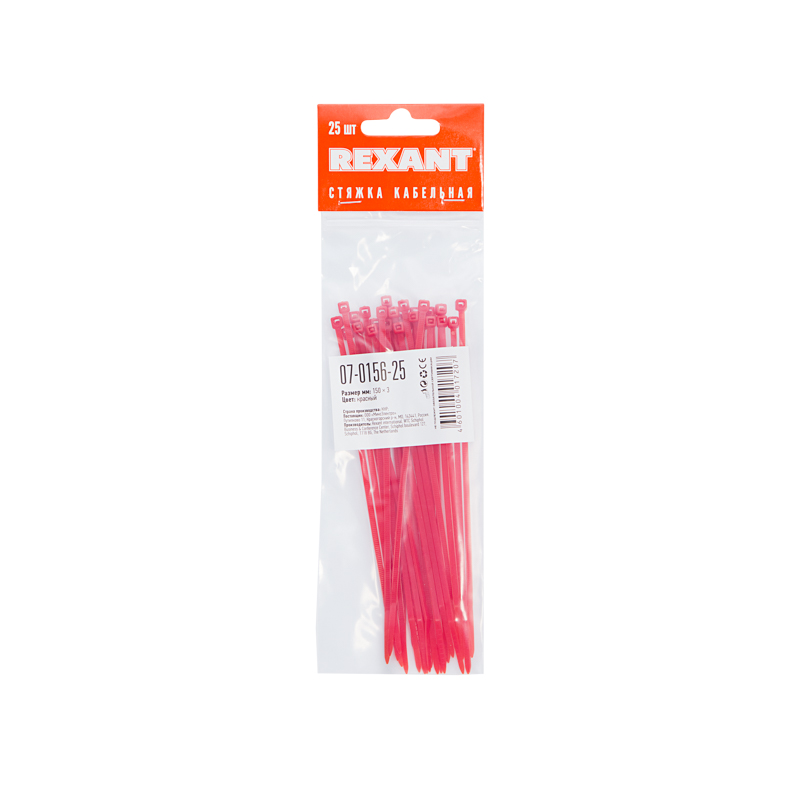 Хомут нейлоновый (кабельная стяжка) 150х2,5 мм красный REXANT предназначен для крепления или обвязки в жгут кабелей и проводов, крепления гибких гофротруб, а также других предметов к несущей поверхности или для соединения между собой. Такая стяжка используется при проведении электромонтажных работ, при монтаже структурированных кабельных систем, для бытовых нужд, а также в других отраслях народного хозяйства. Представляет собой гибкую полоску из нейлона высокой прочности (полиамид-6,6) с замком на конце. Полиамид-6,6 — кристаллизующийся конструкционный материал, имеющий высокую твердость и механическую прочность, отличающийся высокими электроизоляционными свойствами. Простой и удобный монтаж осуществляется вручную следующим образом: большим пальцем левой руки прижать замок к пучку, а правой рукой затягивайте петлю, либо с помощью специального инструмента REXANT арт.12-4521 или 12-4541 (вставить конец затяжки в замок и затянуть до полной фиксации пучка, после чего отрезать выступающую часть бандажа). Не рекомендуется перегибать бандаж при затяжке. Хомуты нейлоновые гарантируют качество, оперативность и экономичность профессионального электромонтажа, обеспечив максимально надежную фиксацию предметов.Основные характеристики:- длина и ширина: 150х2,5 мм- диаметр охвата (максимальный): 35 мм- максимальная рабочая нагрузка: 8 кг- прочность при растяжении: не менее 50 МПа- модуль упругости при растяжении: 8000-11000 МПа- высокое сопротивление к основаниям, маслам, смазочным материалам, хлоридным растворителям- класс воспламеняемости: UL 94 класс V-2 (самозатухающий)- не содержит галогенов- тип: неразъемные, одноразового использования- температурный диапазон использования: –35...+85 ℃- количество в упаковке: 25 шт.- цвет: красный.