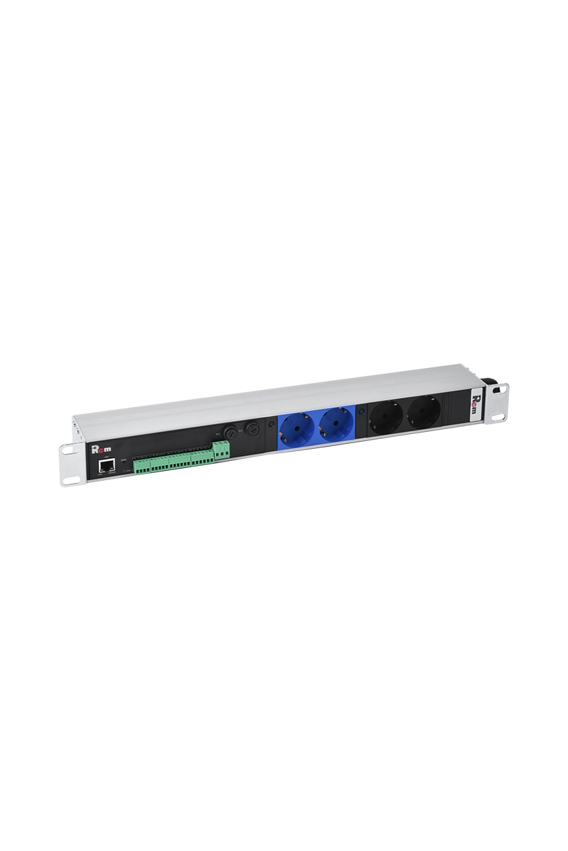 Упр. блок розеток с монит. Rem-MC1 2x2 S, 32A, алюм., 19", колодка