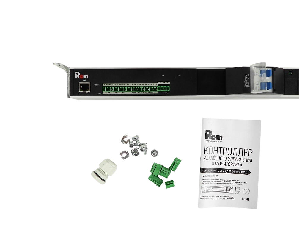 Упр. верт. блок розеток с монит. Rem-MC1 4x3 С13, 2x2 С19, 32A, алюм., 33-48U, колодка, R-MC1-32-4x3C13-2x2C19-A-1420-K