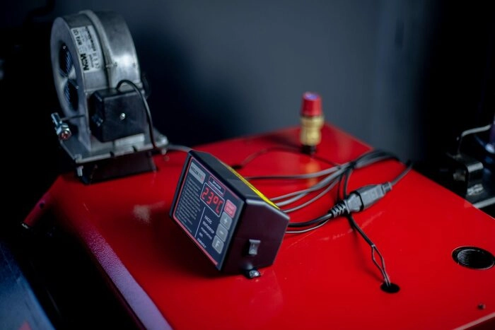 Контроллер плавно уменьшает обороты вентилятора при приближении температуры к заданной вами. Эта функция позволяет избежать температурных ударов и предотвращает инерционность разогрева. Время горения на одной закладке топлива увеличивается до 30%, так как топливо сжигается полностью и не вылетает в трубу. Стенки котла остаются чистыми, даже спустя несколько месяцев использования.