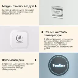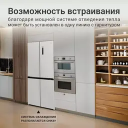 • Особенности Совмещает преимущества отдельно стоящих и встраиваемых холодильников