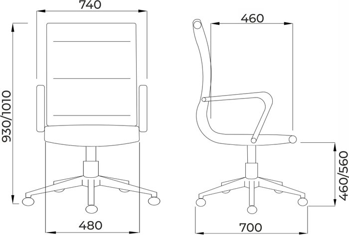 • Высота кресла 93 — 101 см