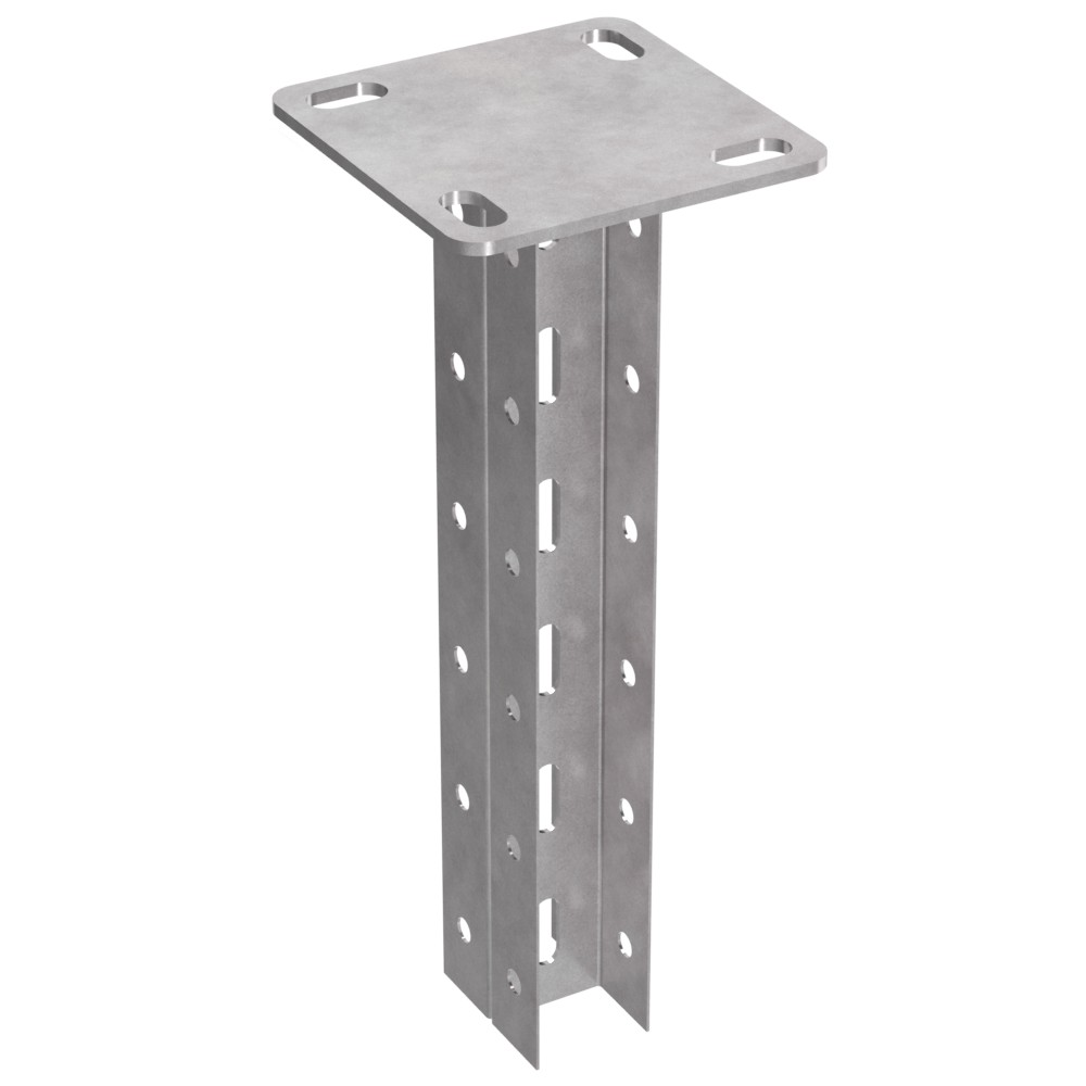 Стойка двойная потолочная для средних нагрузок 45х30 с пяткой 120х120 - это опорное изделие, выполненное из двух П-образных профилей и квадратного основания, сваренных между собой. Два П - образного профиля и квадратное основание позволяют крепить изделие к потолку, стене или полу. Разные исполнения по длине данного изделия дают возможность подбирать оптимальный вариант для формирования нужных конструкций. Также изделие позволяет крепить элементы с двух противоположных сторон, что увеличивает количество линий КНС.
