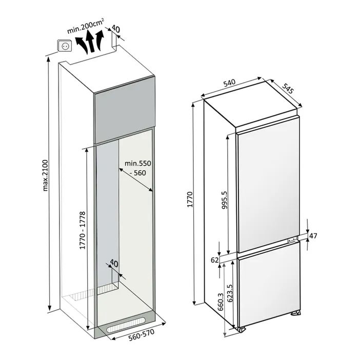 Система розморожування No Frostхолодильне + морозильне відділення