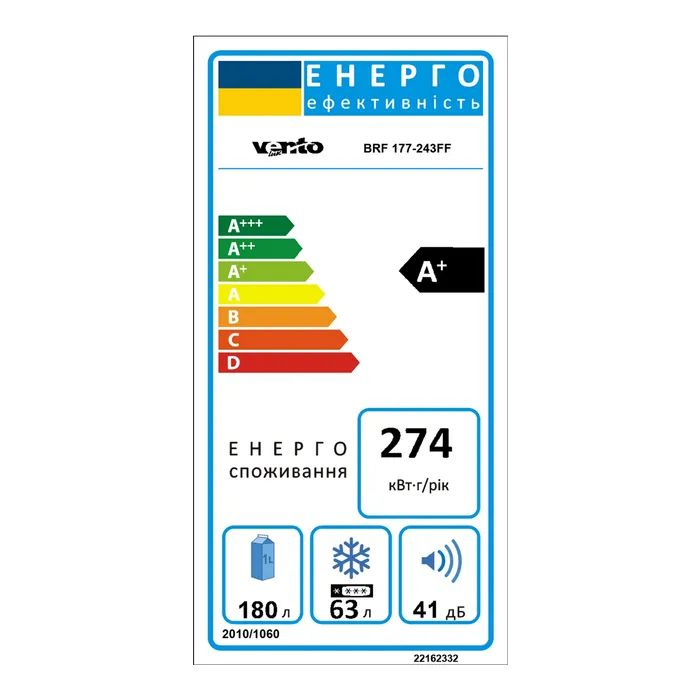 Корисний об'єм холодильної камери180 л