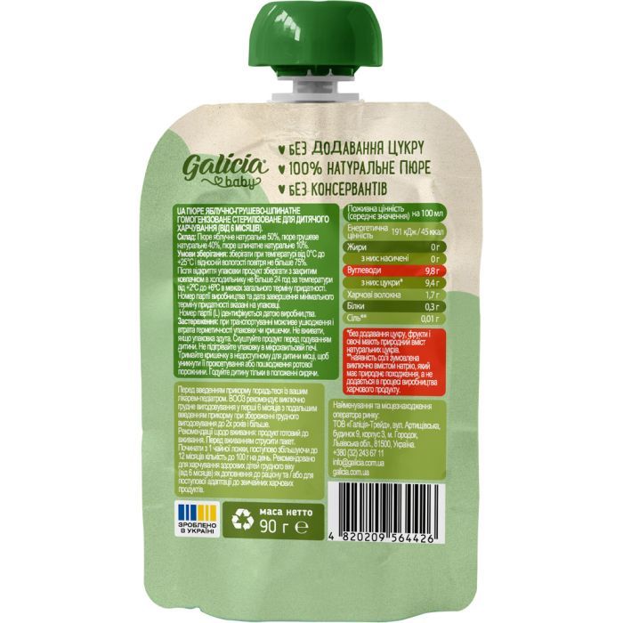 - Модель Baby яблучно-грушево-шпинатне натуральне гомогеніз