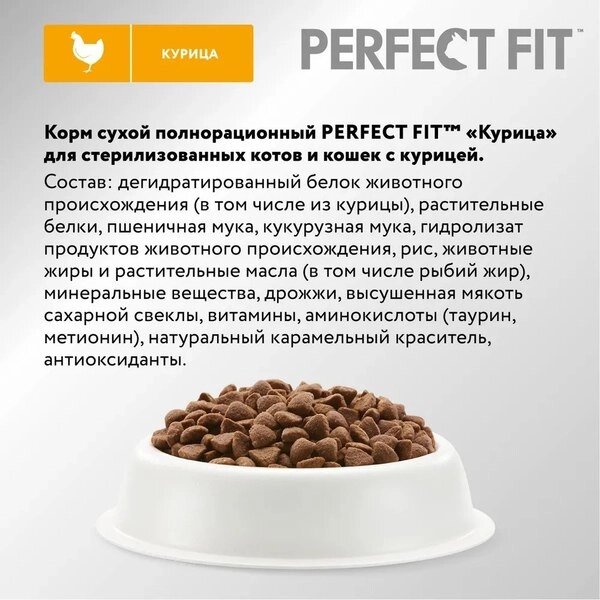 Сухой корм для кошек Perfect Fit Для стерилизованных кошек. Курица