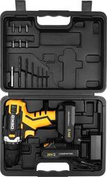 • Комплектация - Дрель-шуруповерт - 1 шт.- Аккумулятор 1,5 Ач - 2 шт.- Зарядное устройство - 1 шт.- Биты - 6 шт.- Сверла - 6 шт.- Держатель бит - 1 шт.- Инструкция- Кейс