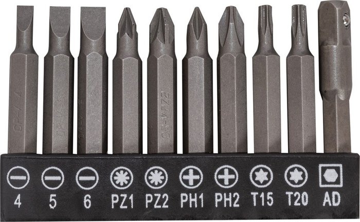 • Оснастка и инструмент в комплекте биты (насадки-отвертки)