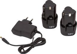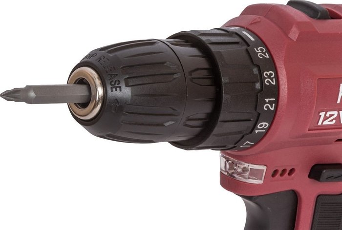 • Комплектация - аккумуляторная дрель, - аккумулятор 2 шт., - зарядное устройство, - набор бит 10 шт. (4,5,6, PZ1,PZ2,PH1,PH2, T15,T20), - кейс для хранения, - руководство по эксплуатации,- гарантийный талон.