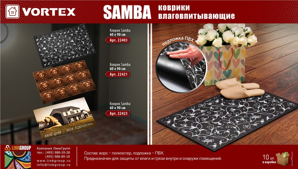 Заводская упаковка нарушена или отсутствует. Товар НОВЫЙ, в полной комплектации. / Очищает обувь от грязи и задерживает влагу при входе в помещение, не скользит. Способ нанесения рисунка фотопечать. Размер: 60 х 90 см.