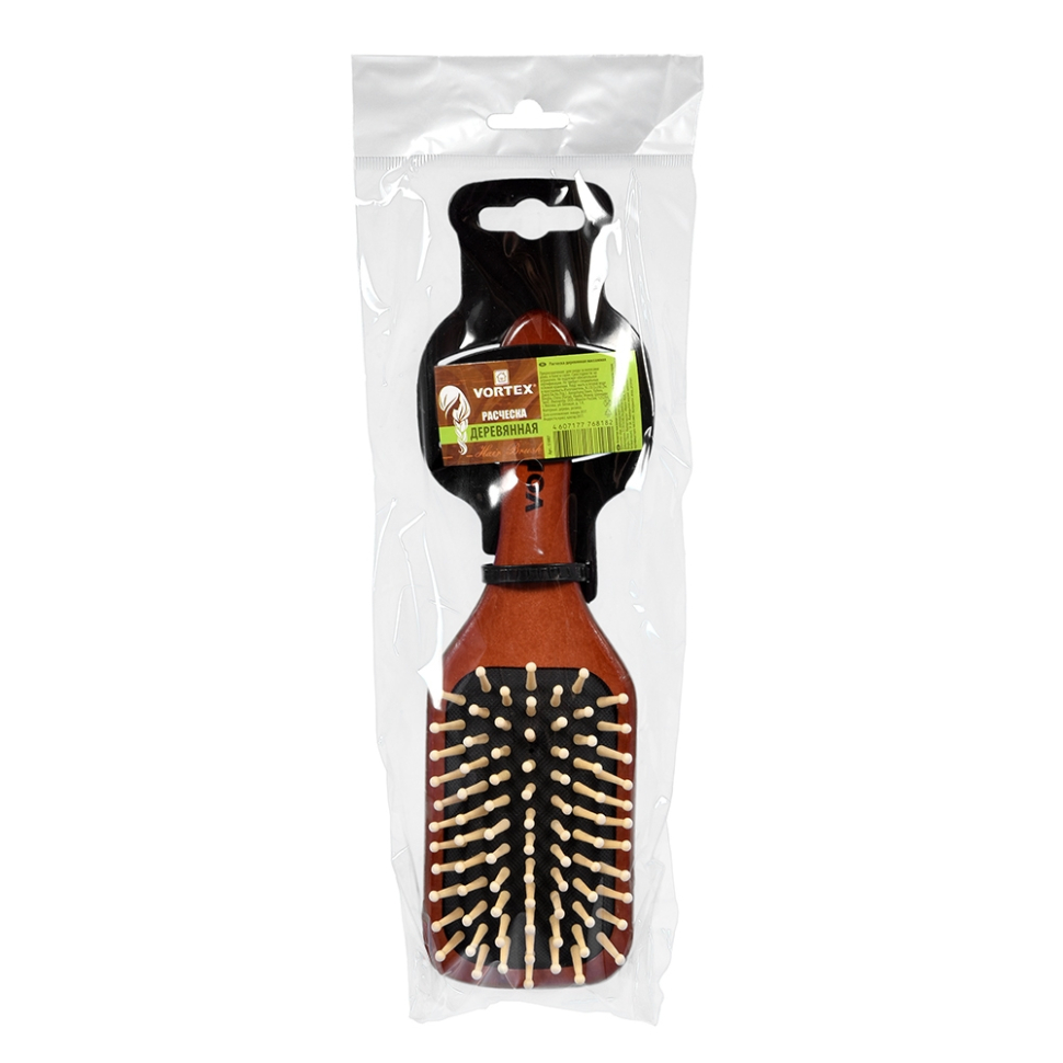Нарушена упаковка! <296971> Расческа деревянная, массажная, 20х6х3,5 см, ''прямоугольник'', с деревянными зубчиками ''VORTEX'' 51007
