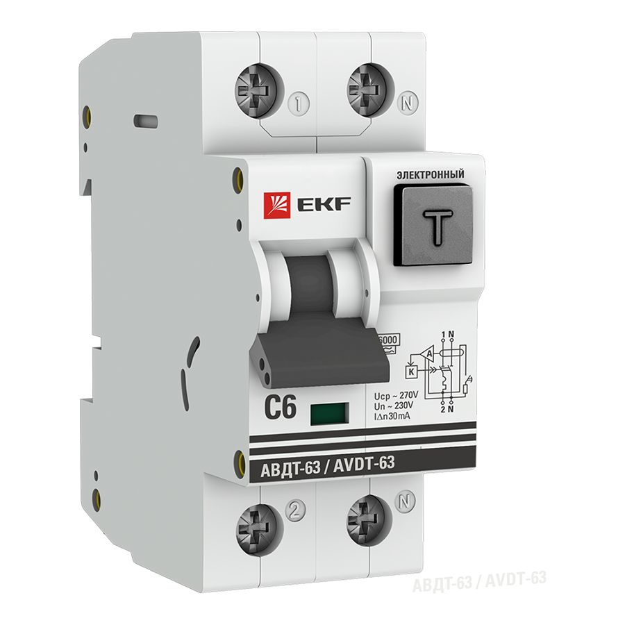 Автоматический выключатель дифференциаль ного тока АВДТ-63 EKF PROxima представляет аппарат, сочетающий функции автоматического выключателя с электромеханическим или электронным УЗО. При обнаружении автоматическим выключателем в защищаемом участке сети тока утечки (повреждения) на землю или сверхтока (тока перегрузки иликороткого замыкания) происходит срабатывание устройства, приводящее к отключению защищаемой сети. Возможна коммутация алюминиевым и медным проводником.Автоматический выключатель дифференциального тока малогабаритный АВДТ-63М EKF PROxima представляет аппарат, сочетающий функции автоматического выключателя с электронным УЗО типа АС в компактном корпусе шириной один модуль. При обнаружении автоматическим выключателем на защищаемом участке сети тока утечки (повреждения) на землю или сверхтока (тока перегрузки или короткого замыкания) происходит срабатывание устройства, приводящее к отключению защищаемой сети. Особое отличие дифференциальных автоматических выключателей EKF с электронным УЗО – в наличии блока защиты от перенапряжения. Возможна коммутация алюминиевым и медным проводом.