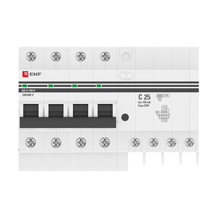 "Дифференциальный автоматический выключатель АД-2(4) (S) EKF PROxima представляет собой аппарат, сочетающий функции автоматического выключателя с устройством защитного отключения. При обнаружении автоматическим выключателем в защищаемом участке сети тока утечки (повреждения) на землю или сверхтока (тока перегрузки или короткого замыкания) происходит срабатывание устройства, приводящее к отключению защищаемой сети. Особое отличие дифференциальных автоматов EKF – в наличии встроенного блока защиты от перенапряжения.