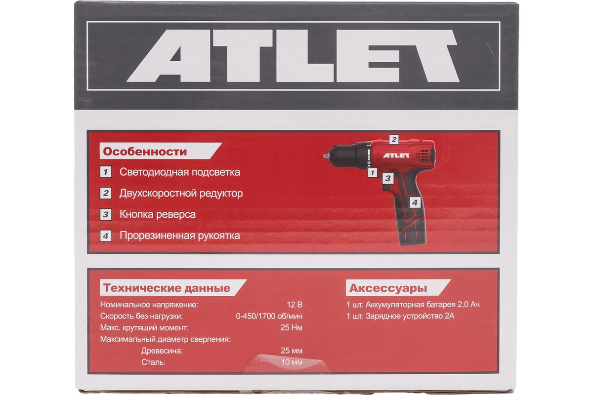 Аккумуляторная дрель-шуруповерт ATLET CDT212D