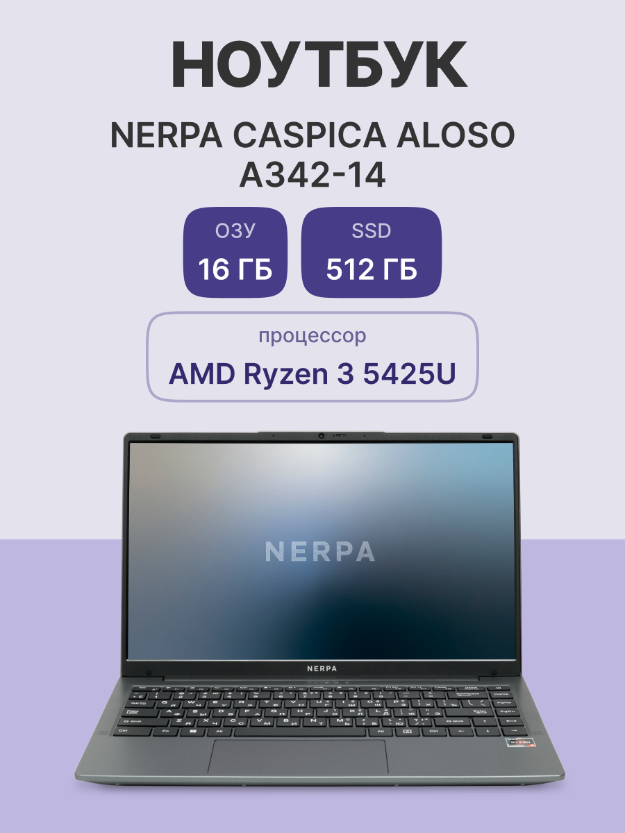 Ноутбук/ Ноутбук NERPA CASPICA ALOSO A342-14 (14.1" IPS/1920x1080/AMD Ryzen 3 5425U (2.7GHz)/16GB/512GB NVMe SSD/Vega 6/WiFi+BT/Win11Pro/51WHr/1.45kg/Grey/1Y)