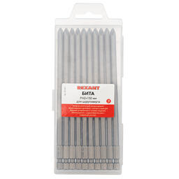 Бита PH2*150 мм (насадка) для закручивания крепежа (шурупы, винты). Произведена из стали S2 и закалена до оптимальной твердости, чем обусловлен высокий ресурс. Шестигранный хвостовик (Е6,3) обеспечивает быструю и надежную фиксацию в шуруповертах. Также используется с отверткой для бит