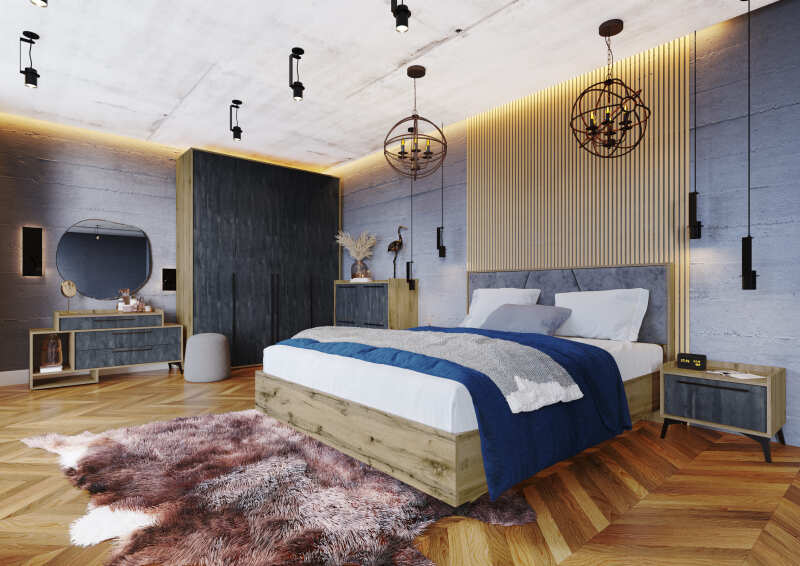 Спальня Габи Дуб вотан/Обсидиан Набор-1