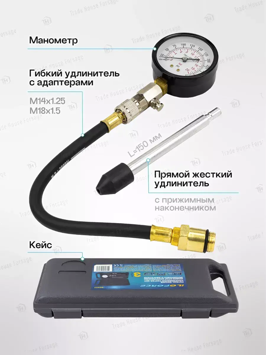 - Дополнительная комплектация адаптер (М14, М20), манометр, шланг