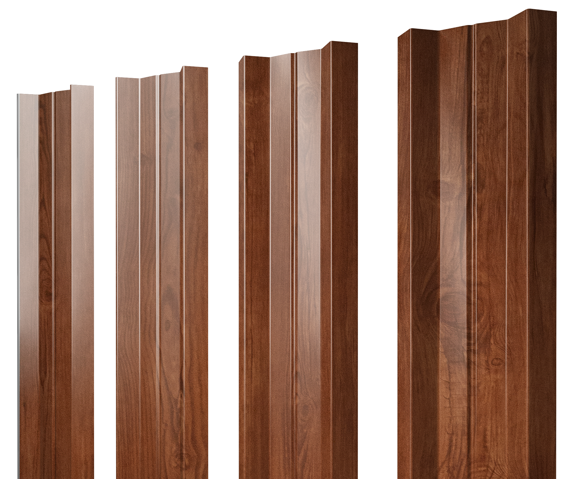 Штакетник М-образный А с прямым резом — вид штакетника отличает выпуклая во внутреннюю сторону форма с канавкой на центральной части и дополнительными боковыми ребрами. Этот профиль можно назвать самым жестким.