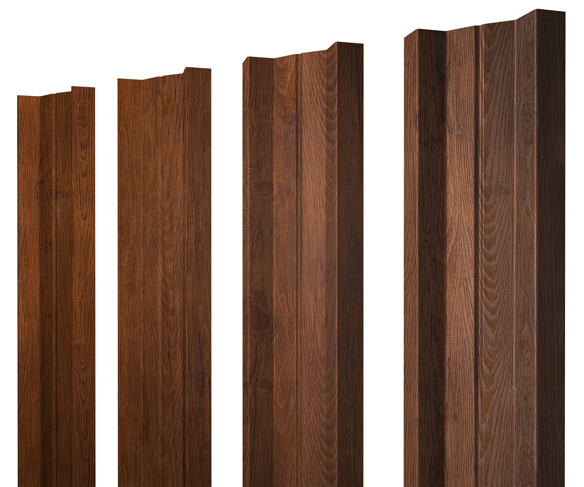 Штакетник М-образный А с прямым резом — вид штакетника отличает выпуклая во внутреннюю сторону форма с канавкой на центральной части и дополнительными боковыми ребрами. Этот профиль можно назвать самым жестким.