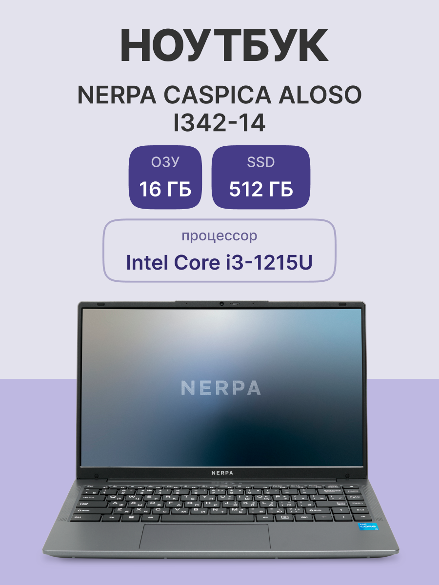 Ноутбук/ Ноутбук NERPA CASPICA ALOSO I342-14 (14.1" IPS/1920x1080/Intel Core i3-1215U (1.2GHz)/16GB/512GB NVMe SSD/UHD/WiFi+BT/noOS/51WHr/1.45kg/Grey/1Y)