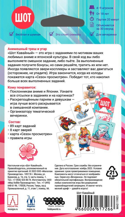 Игра настольная Magellan "Шот: Кавайный", 18+