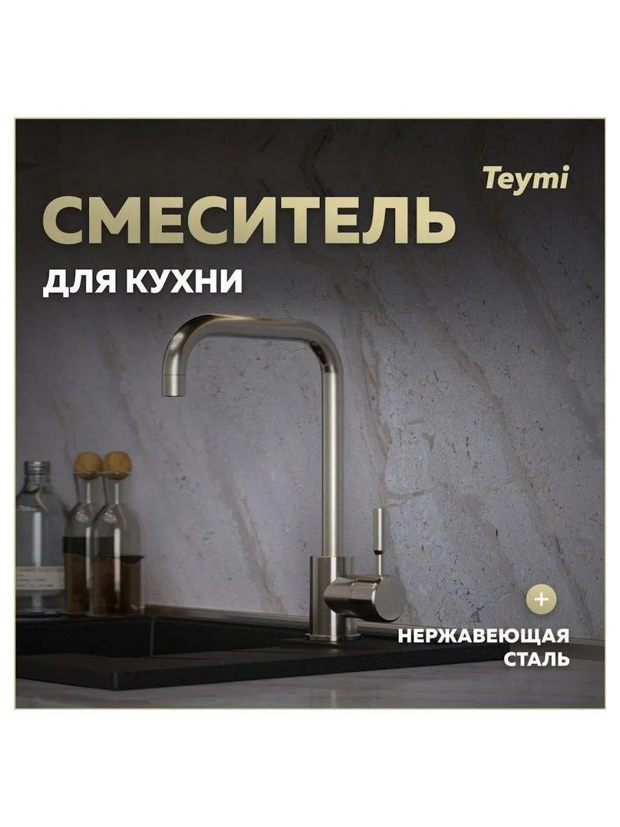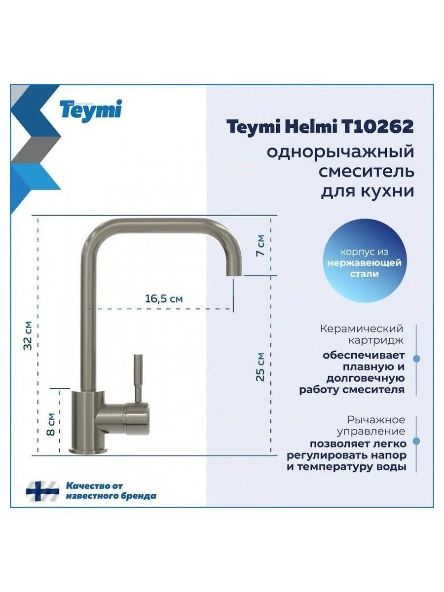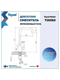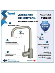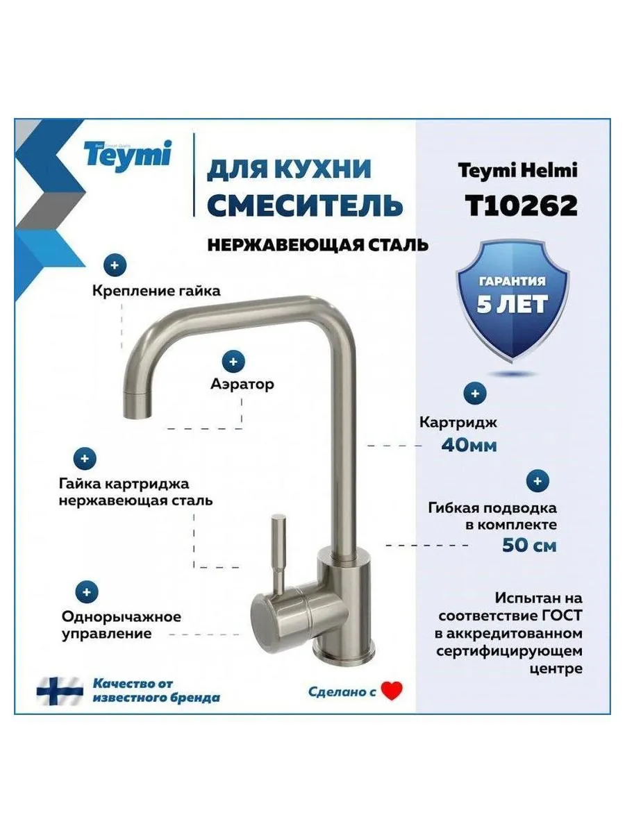 Описание товара Смеситель для кухни Teymi Helmi, нержавеющая сталь T10262