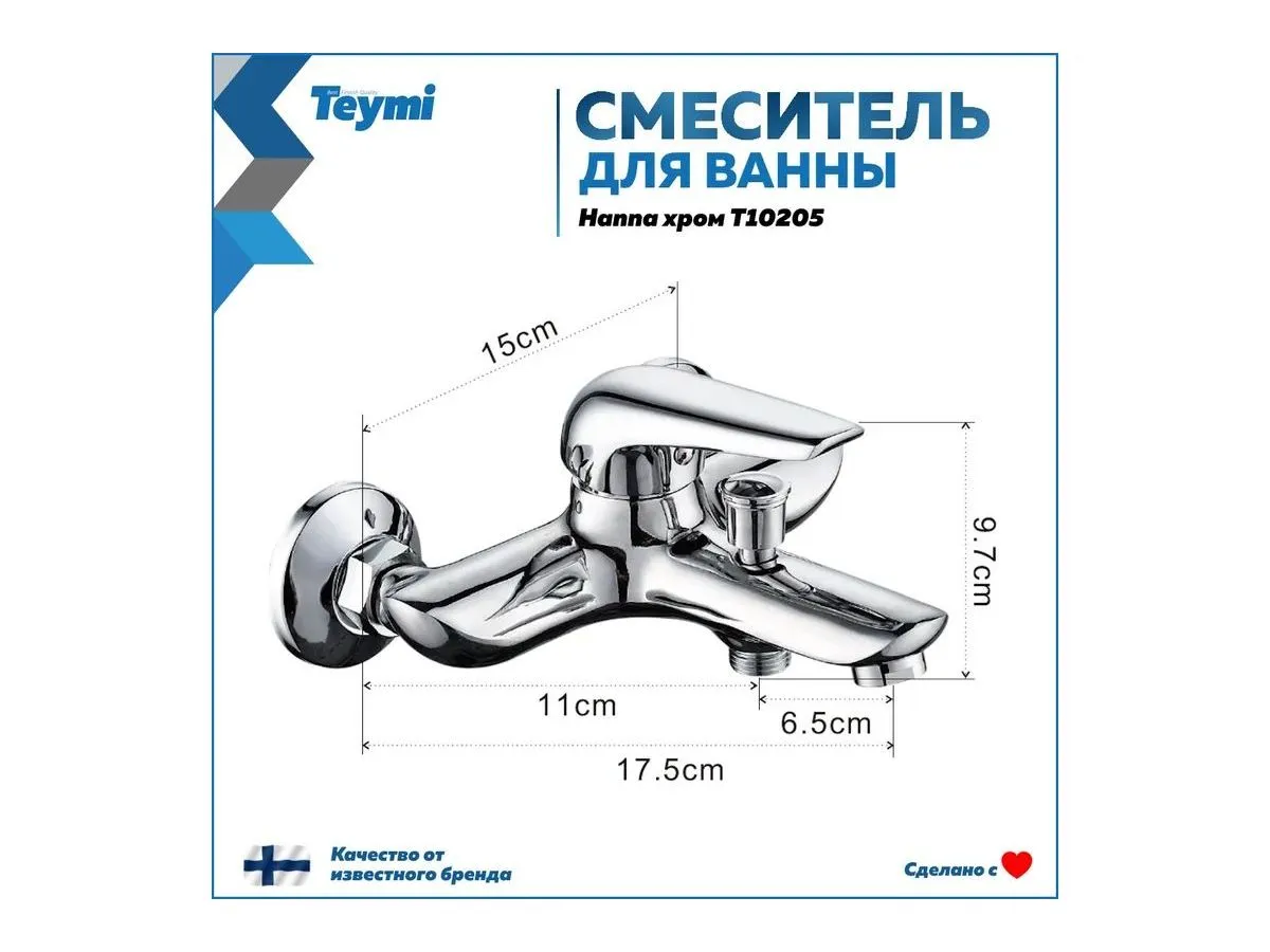 Описание товара Смеситель для ванны Teymi Hanna, хром T10205