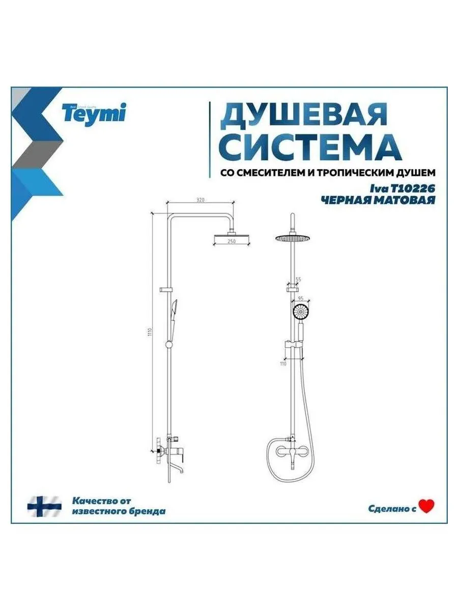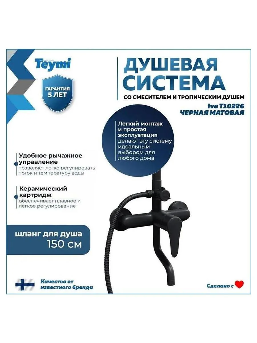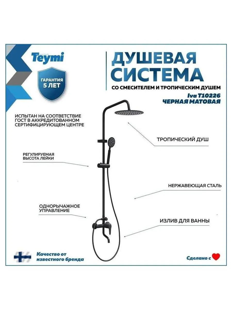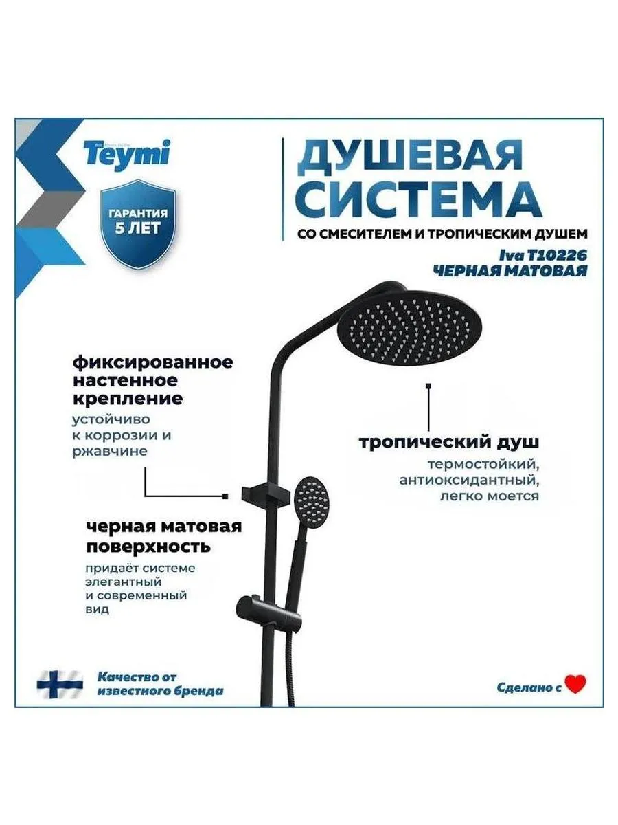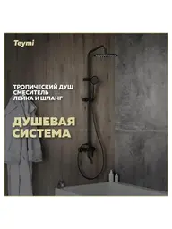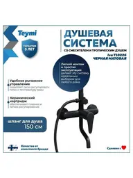 Описание товара Душевая система Teymi Iva со смесителем и тропическим душем, черная матовая T10226