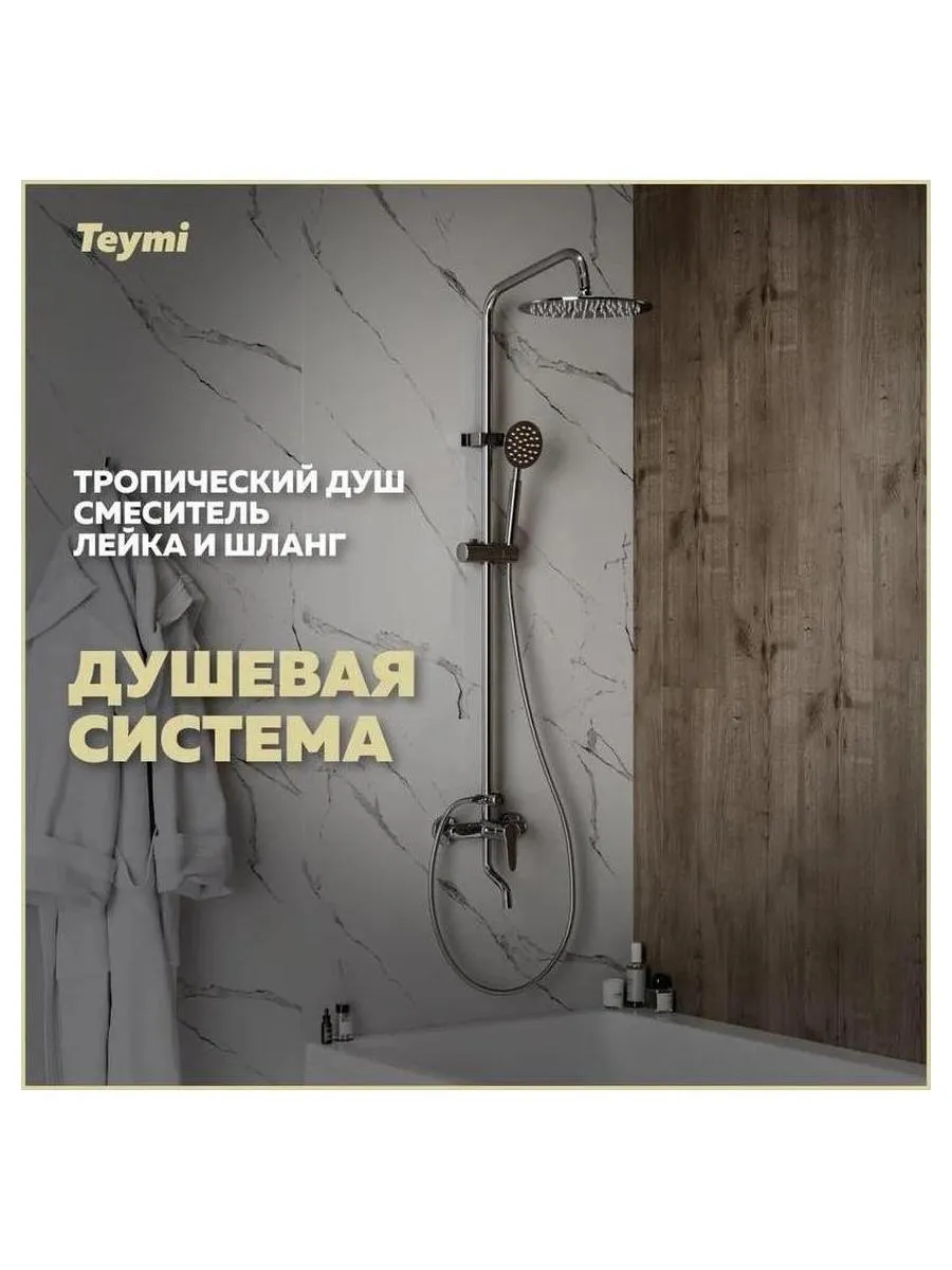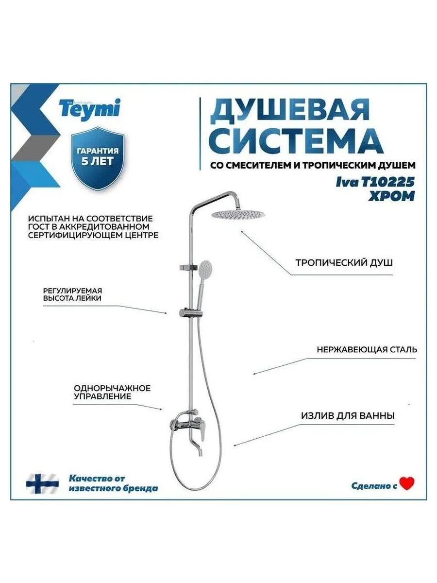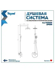 Описание товара Душевая система Teymi Iva со смесителем и тропическим душем, хром T10225