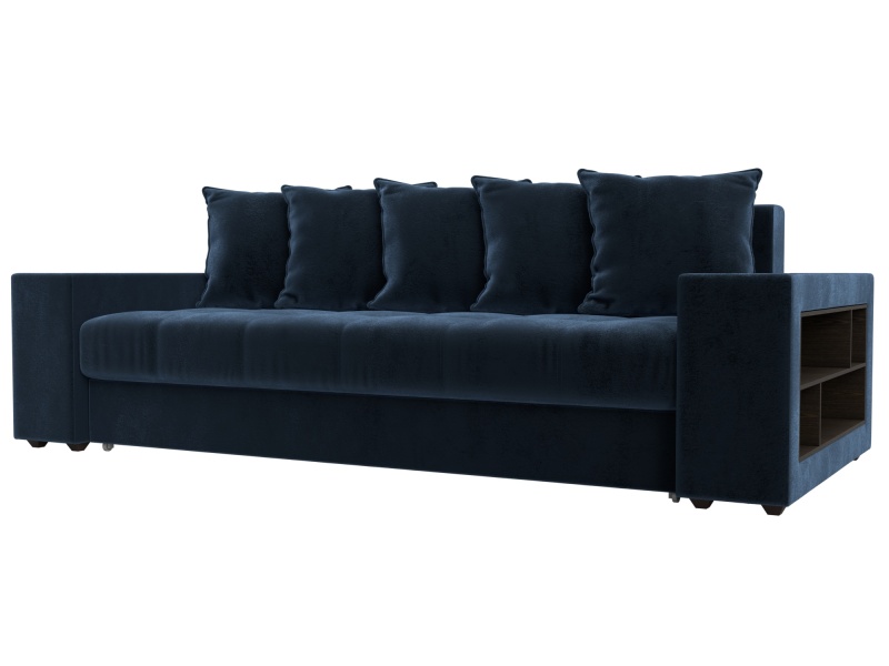 Диван прямой Дубай полки справа Велюр TOWER 13 синий