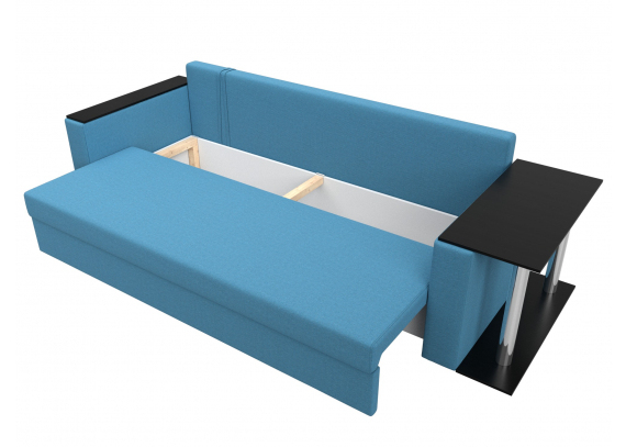 Диван прямой Атланта Лайт со столом справа Рогожка Амур 10 голубой